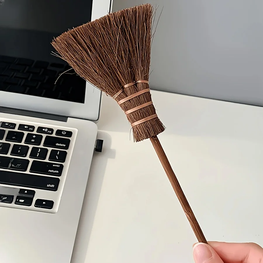 1Pc Natural Mini Broom, Portable Desktop Cleaning Tool, for Keyboard and Crevice Dust Removal, Office Desktop Accessory-Office
